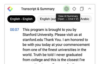 Utdata från YouTube Summering med ChatGPT finns tillgänglig på flera språk. Dessa kan väljas från huvudmenyn som finns längst upp i widgeten efter att den har öppnats på YouTube i ett inbäddat fönster.